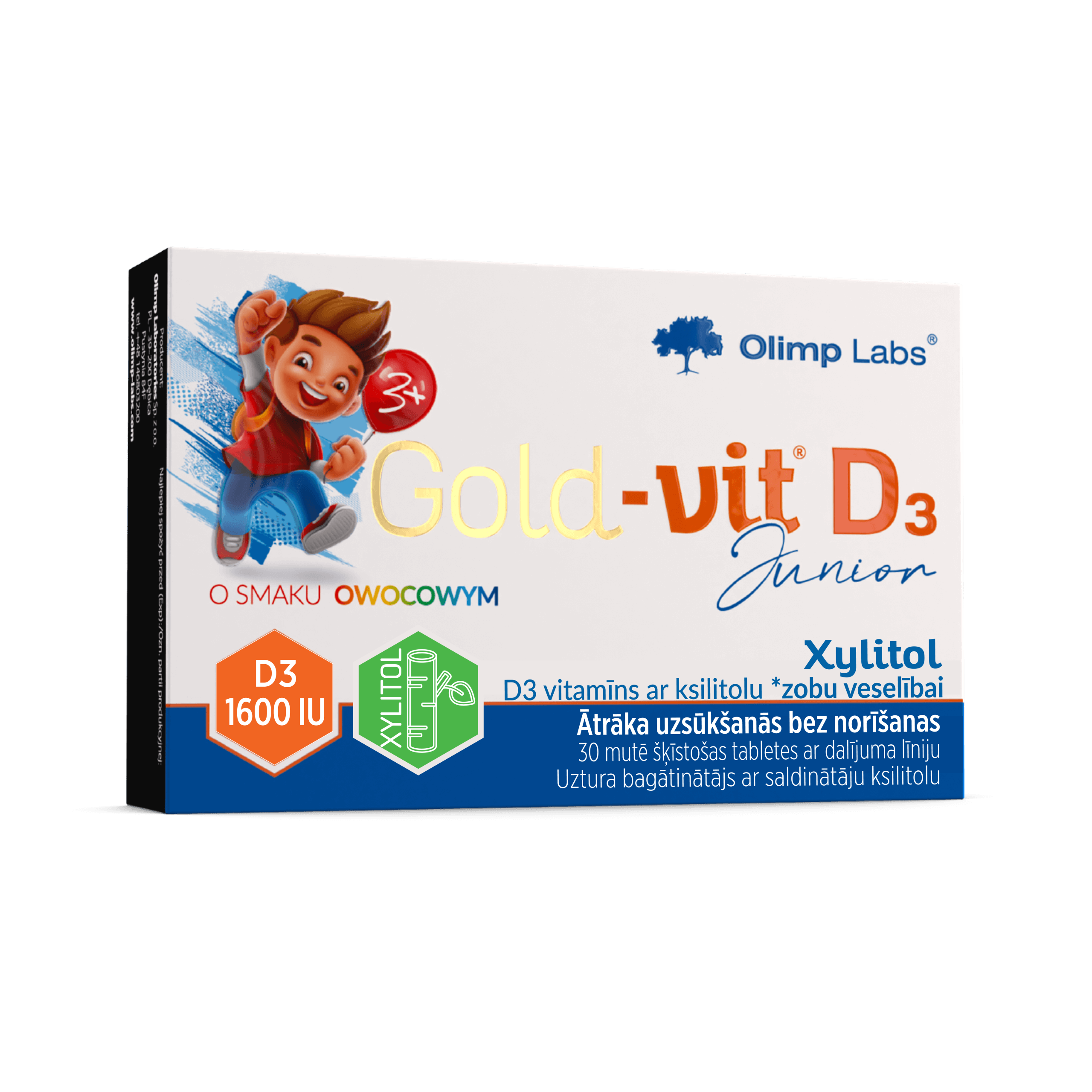 Viena tablete satur 1600SV D3 vitamīnu un pievienotu *ksilītu, kas ir dabīgs saldinātājs – cukura aizvietotājs.